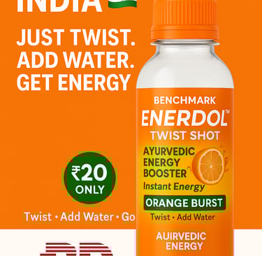 Enerdol™ Twist Shot blends Ayurvedic inspiration with modern innovation, offering a smart alternative to conventional energy drinks.